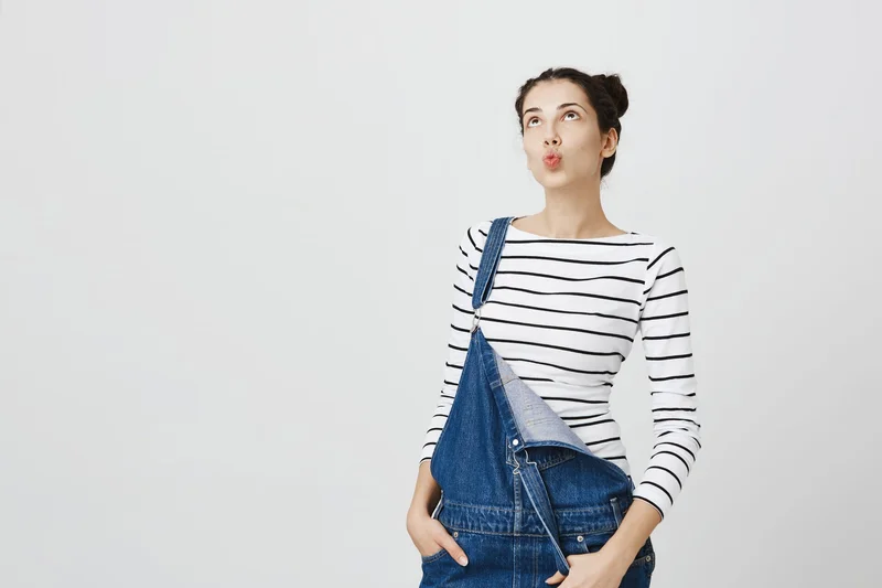 девушка в комбинезоне и тельняшке Источник фото: cookie_studio/freepik.com