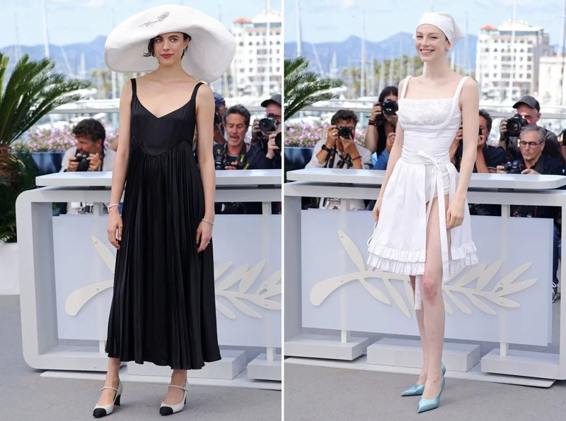 Актрисы Хантер Шаффер и Селена Гомес подхватили модную игру, продемонстрировав на красной дорожке выдающиеся образы. Элегантные трикотажные кардиган и юбка, шпильки и низкий пучок у Селены, белое платье с фартуком и шарфом Prada у звезды «Эйфории» и музы Mugler - Шаффер.