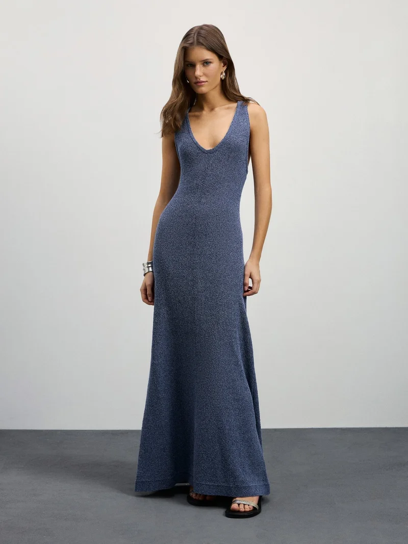 Трикотажный сарафан макси с открытой спиной и глубоким вырезом точно пригодится вам на свидании.