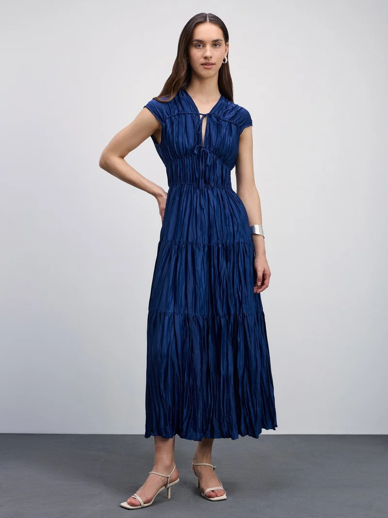 Платье с завязками из жатой ткани напомнит о синем море даже если этим летом вы планируете остаться в городе.