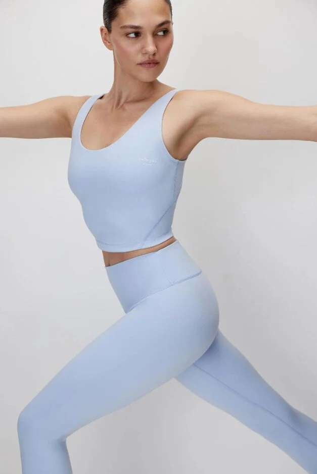Нейтральные пастельные тона, мягкий трикотаж и открытая спина. Идеально для йоги, пилатеса или прогулок в выходной день.