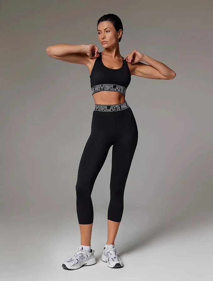 Черные леггинсы с высокой талией + черный топ с хорошей поддержкой. Добавьте черные кроссовки и аккуратную сумку — и вы готовы к любой тренировке. Минимализм, который всегда в моде.