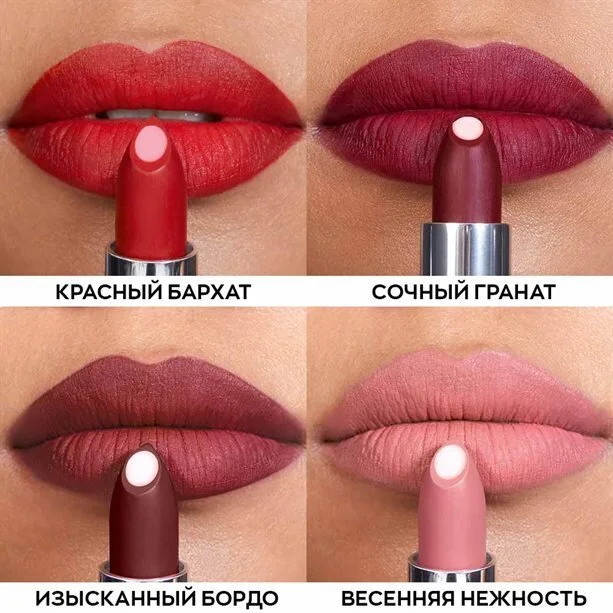 Продукт выпущен в 15 сочных оттенках с насыщенным матовым финишем.