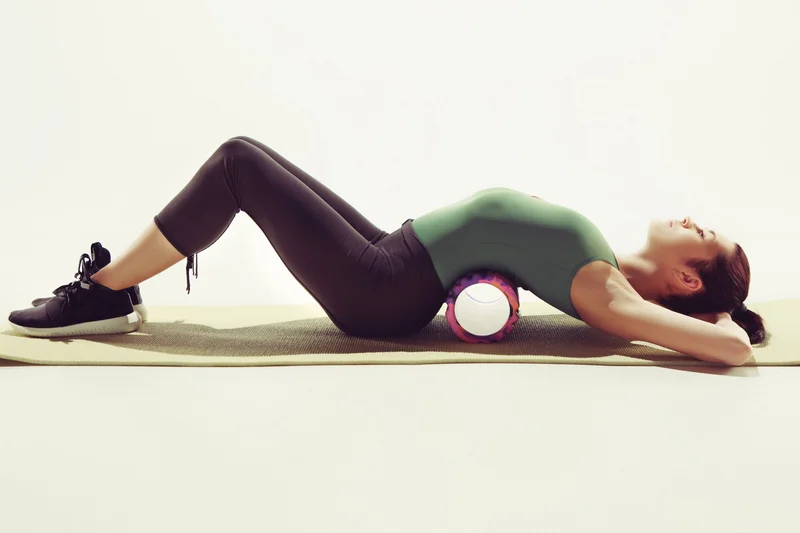 Лягте на спину, положив под неё объёмный валик. Ноги согните в коленях, уперевшись ступнями в пол. Руки вытяните вверх вдоль тела. Постарайтесь максимально расслабить мышцы спины в таком положении. Затем плавно вытяните руки вперёд и также плавно вставайте, подтягиваясь телом к согнутым коленям. Вернитесь в исходное положение, повторите упражнение 5-10 раз, давая себе отдых и расслабление после каждого раза.
